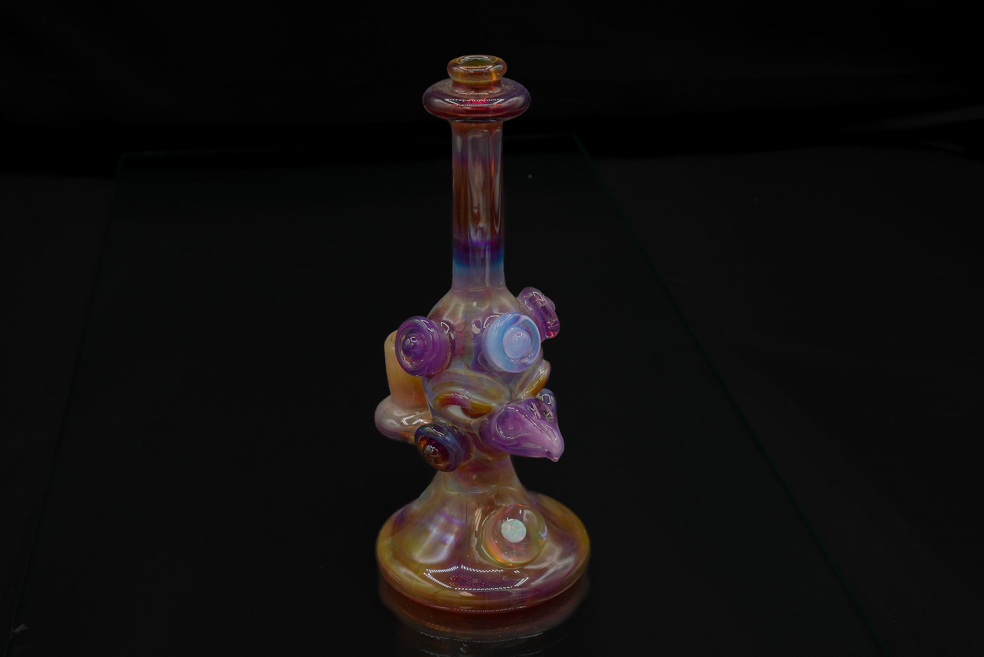 This Mini Totem Hawk Jammer is a stunning example of Creep Glass’s intricate totem-inspired work. The piece showcases a hand-sculpted form that merges mystical design with refined function.