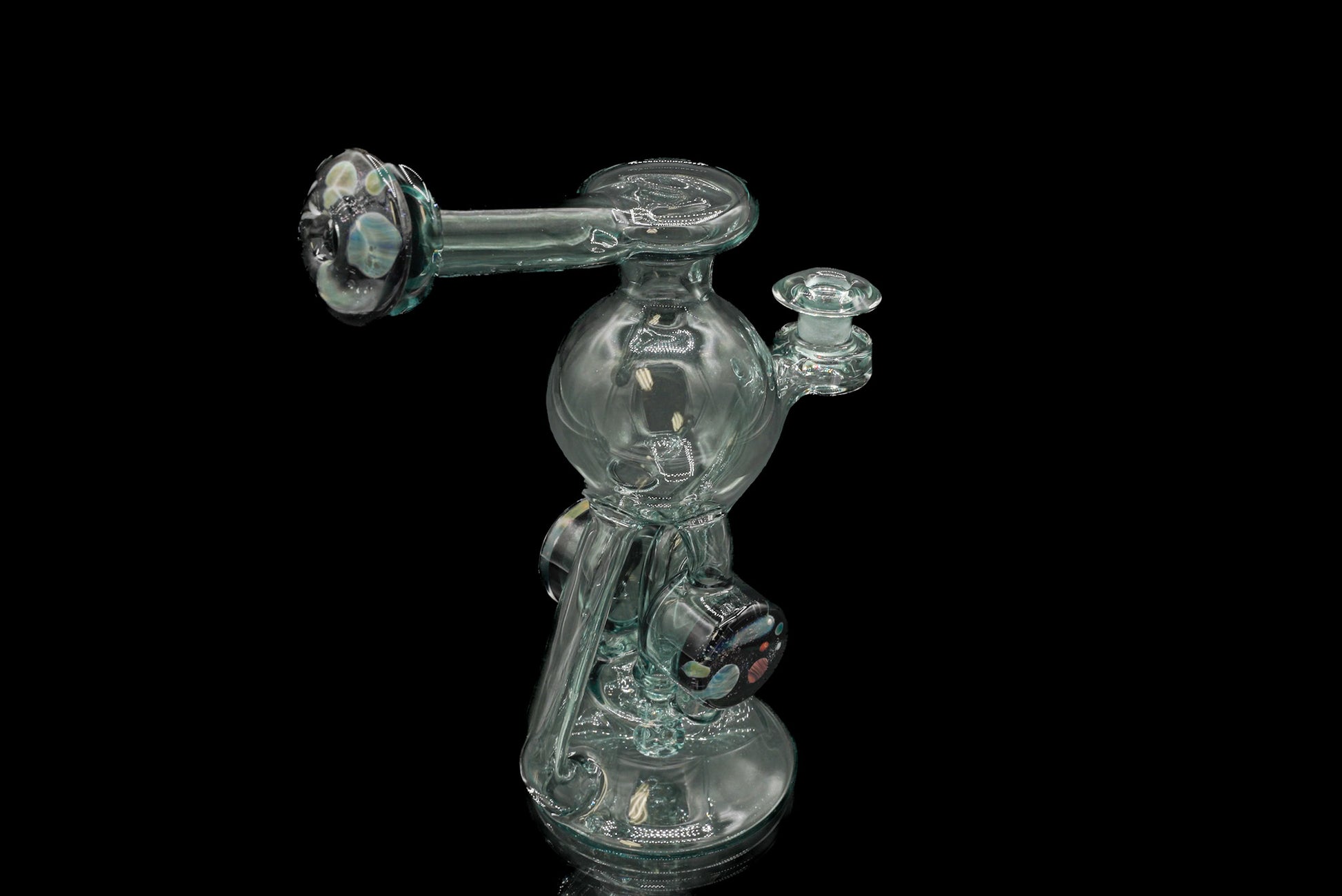 This heady collaboration between Portland Dabber and Asa Glass brings both function and art together in a stunning design. Crafted from crystal-clear borosilicate with sharp line-work and balance, the piece features a perfectly executed recycler system for smooth, flavorful pulls every time.