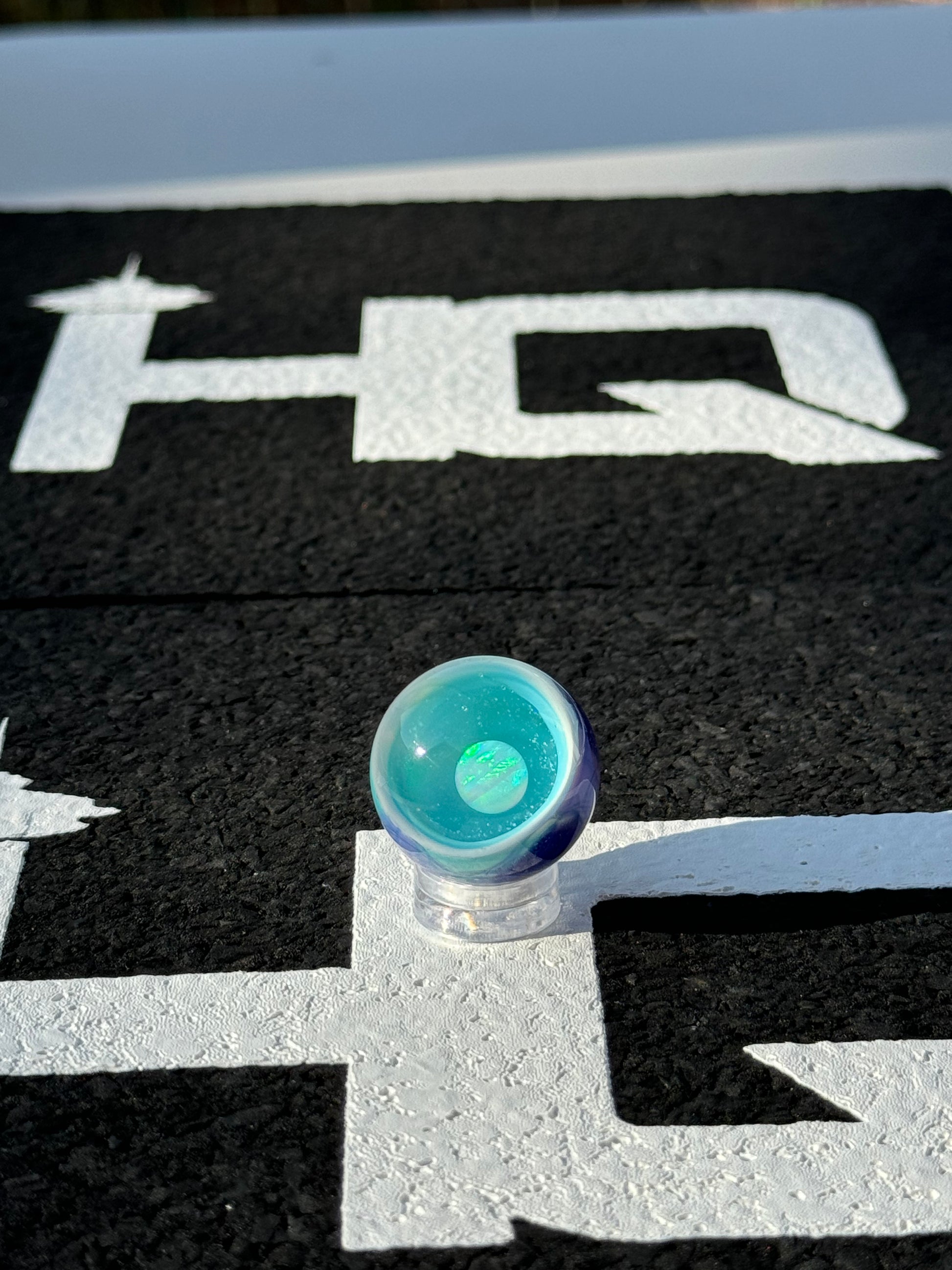 Dive into the depths of Scomo Moanet’s latest creation a mesmerizing glass marble that captures the illusion of a floating world beneath the waves.