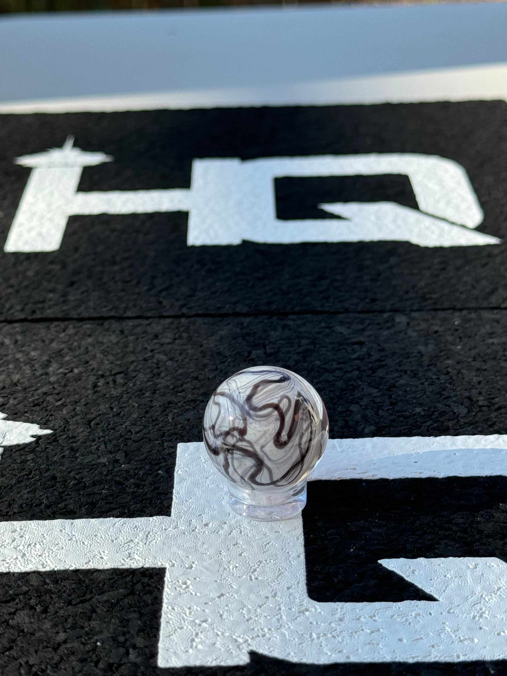 The first marble features a mesmerizing black-and-white scribble tech that swirls across a crystal-clear dome abstract, chaotic, and beautifully balanced. Every twist of color feels alive, dancing through layers of glass with true Moanet motion.